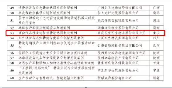 長安民生(shēng)物流結合實際情況,通(tōng)過總結無人(rén)倉、無人(rén)駕駛等智能化項目推進物流業制(zhì)造業深度融合的相關經驗,申報的《面向汽車(chē)行(xíng)業的智慧物流協同制(zhì)造項目》在2021年5月24日入選國家(jiā)發展改革委辦公廳物流業制(zhì)造業深度融合創新發展典型案例并公示。