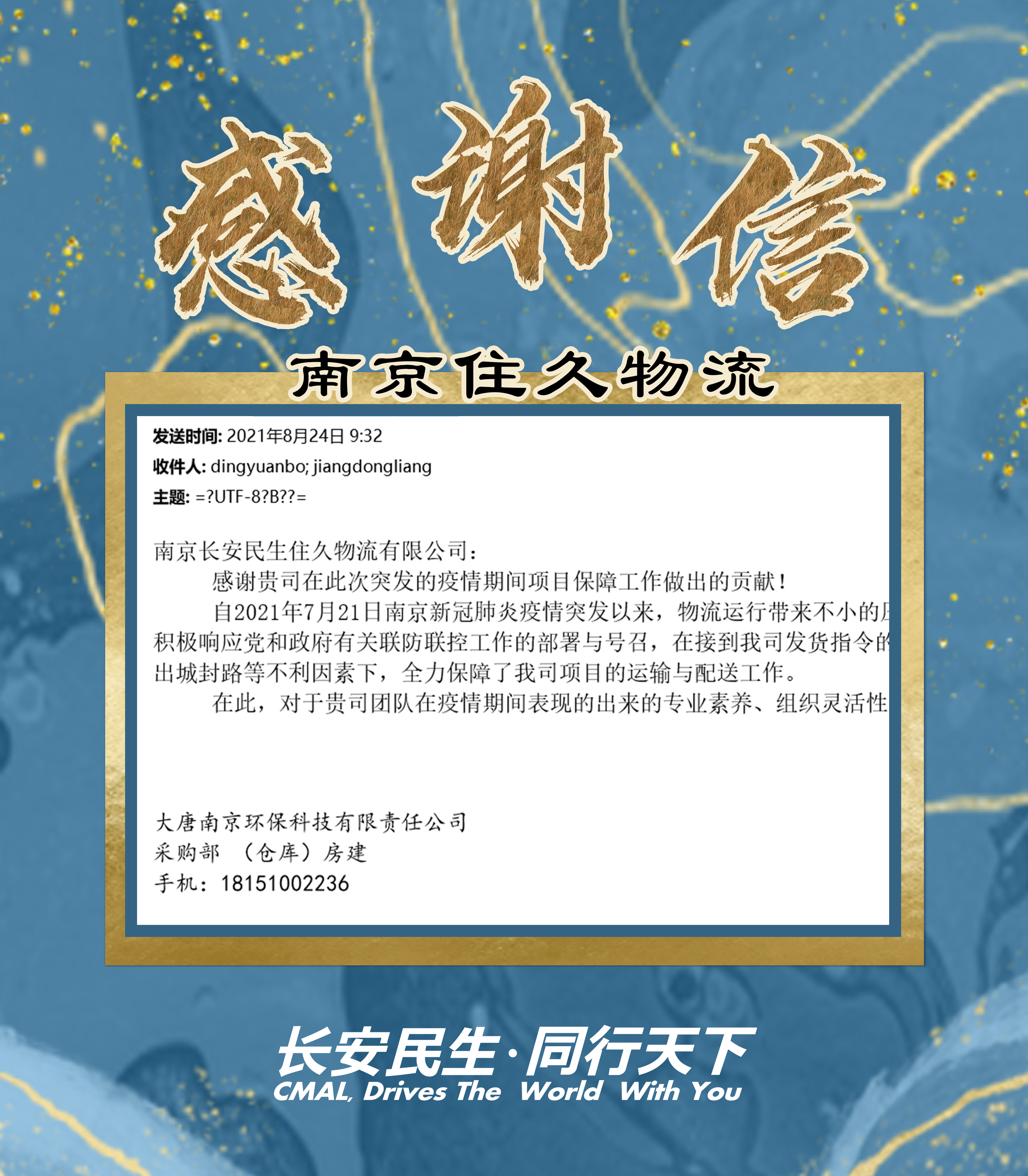 “感謝你(nǐ)們全力支持物資倉儲配送工作(zuò)……”